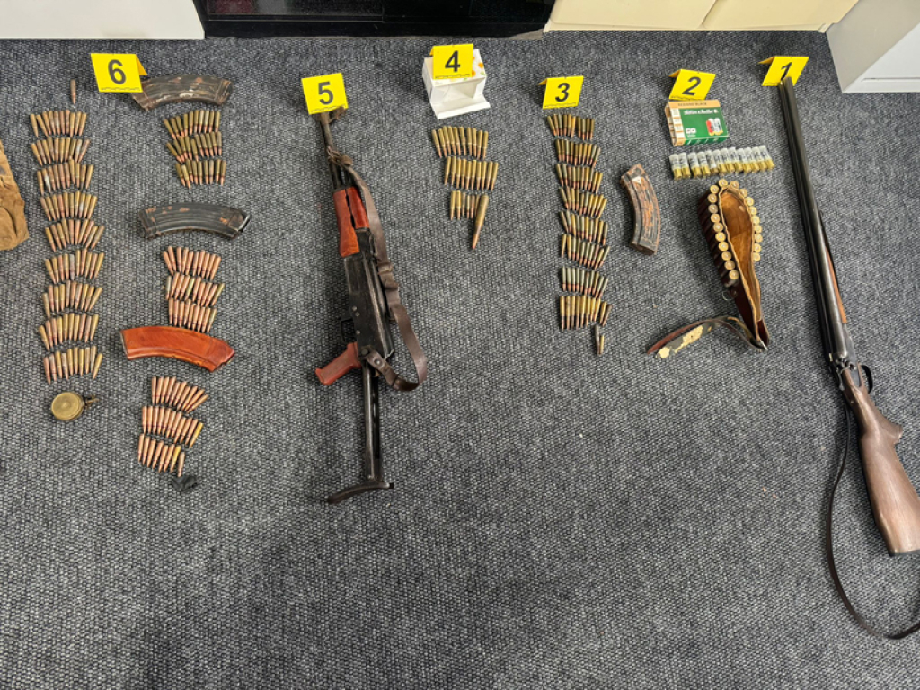 Izvršenim pretresom predmetne kuće i pratećih objekata, u prostoriji koja se nalazi u sklopu navedene kuće, a koju povremeno koristi osoba inicijala M.V., pronađeni su i privremeno oduzeti jedna lovačka puška marke TOZ, kalibra 12/12, 32 komada lovačkih patrona kalibra 12/12, jedna automatska puška AK M70, pet pripadajućih okvira za automatsku pušku, kao i 287 komada vojne municije raznog kalibra.